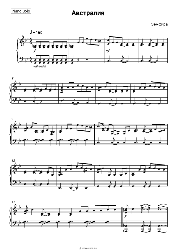 Descargar el archivo de muestra Zemfira - Австралия para ver cómo serán las partituras